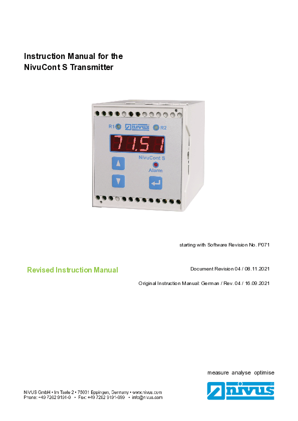 Instruction Manual for measurement device NivuCont S