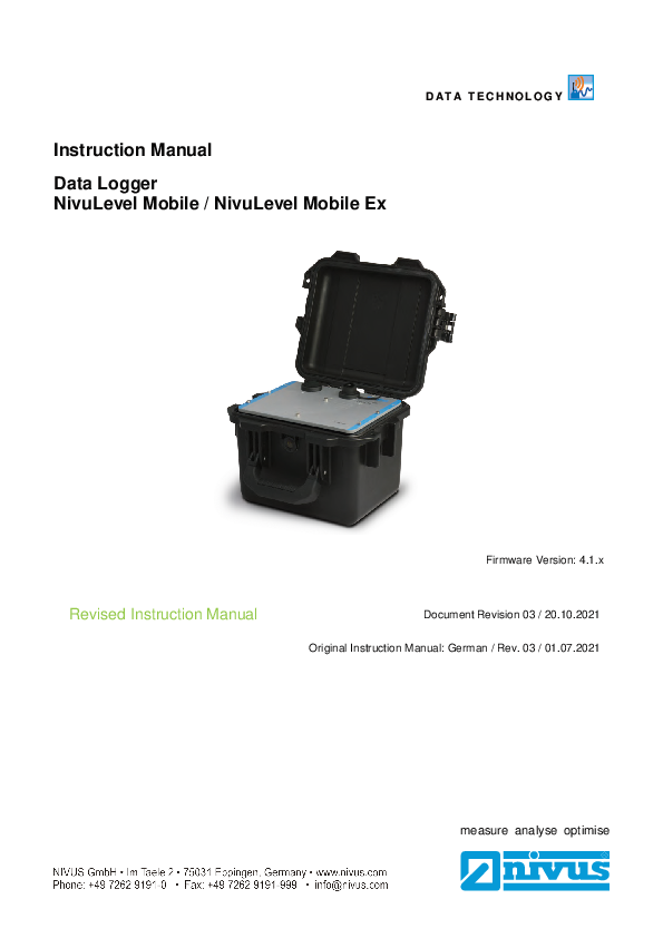 Instruction Manual Data logger NivuLevel Mobile 050 / NivuLevel Mobile 050 Ex