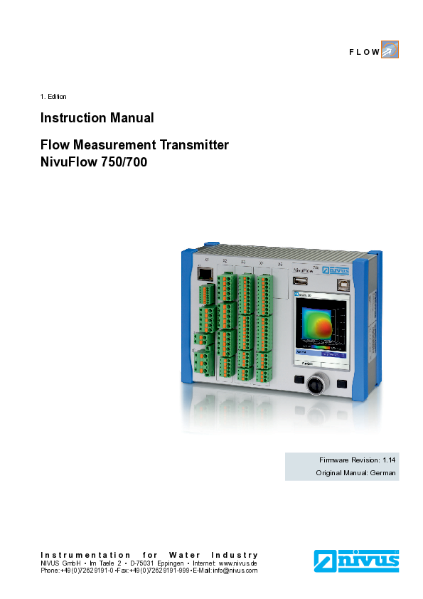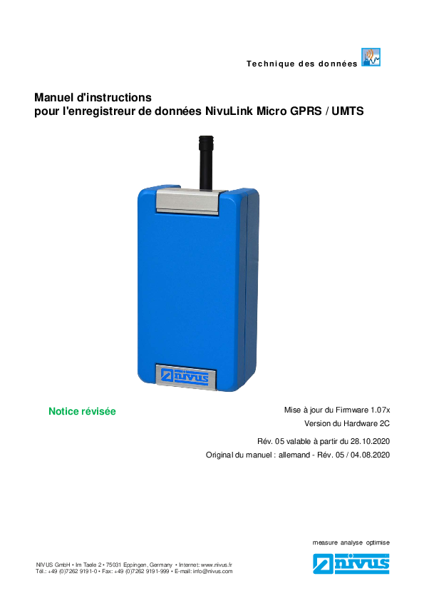 NIVUS Datenübertragung der Geräte NivuFlow 550, 600, 650, 7550, Energy Saver und NivuParQ 850 - Ergänzung zur jeweiligen Betriebsanleitung