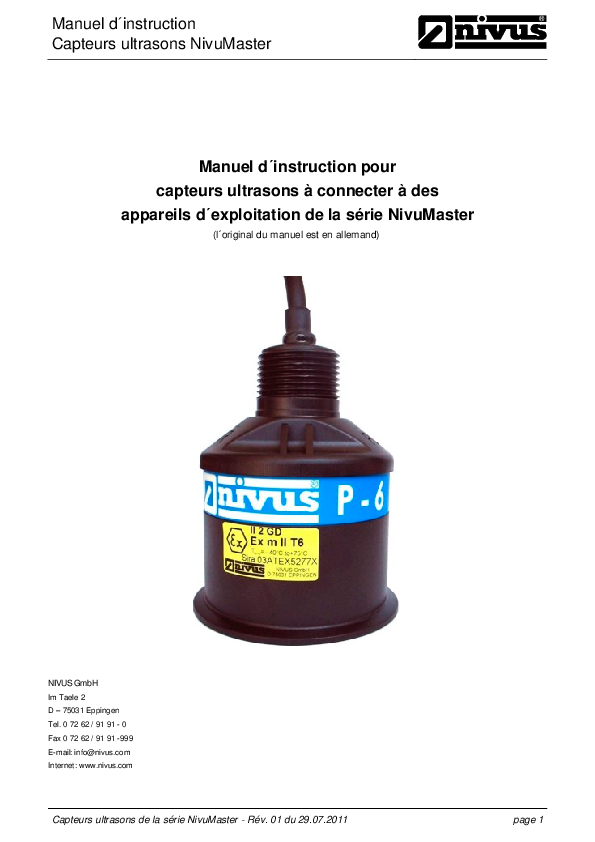 Manuel d´instruction pour capteurs ultrasons - NivuMaster