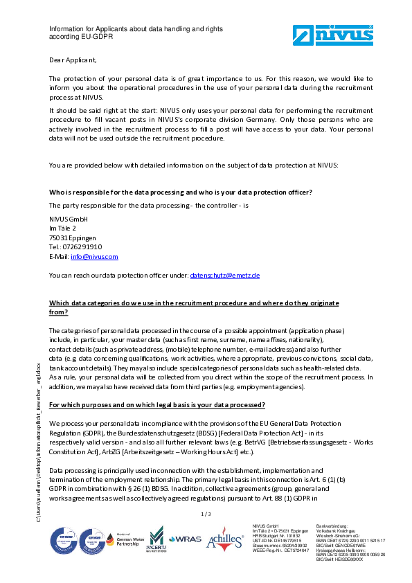Information for Applicants about data handling and Your rights according EU-GDPR