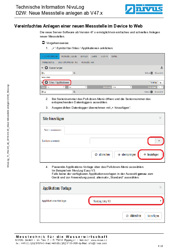Vereinfachtes Anlegen einer neuen Messstelle im Device to Web