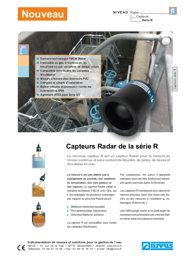 Capteur Radar pour la mesure de niveau continue et sans contact de liquides, de pâtes, de boues et de solides en vrac