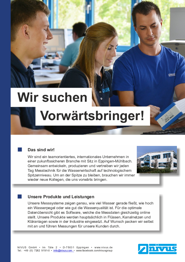 Wir suchen Vorwärtsbringer. Ausbildung bei NIVUS lohnt sich auch für dich!