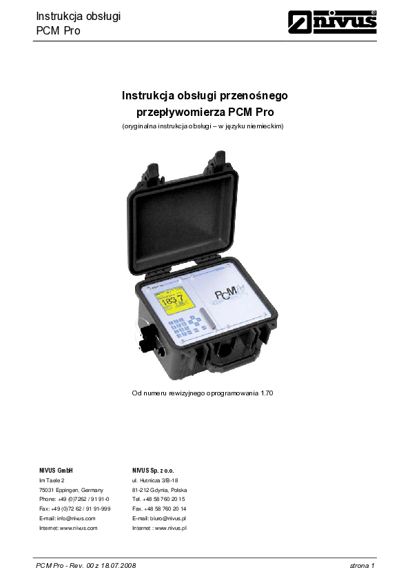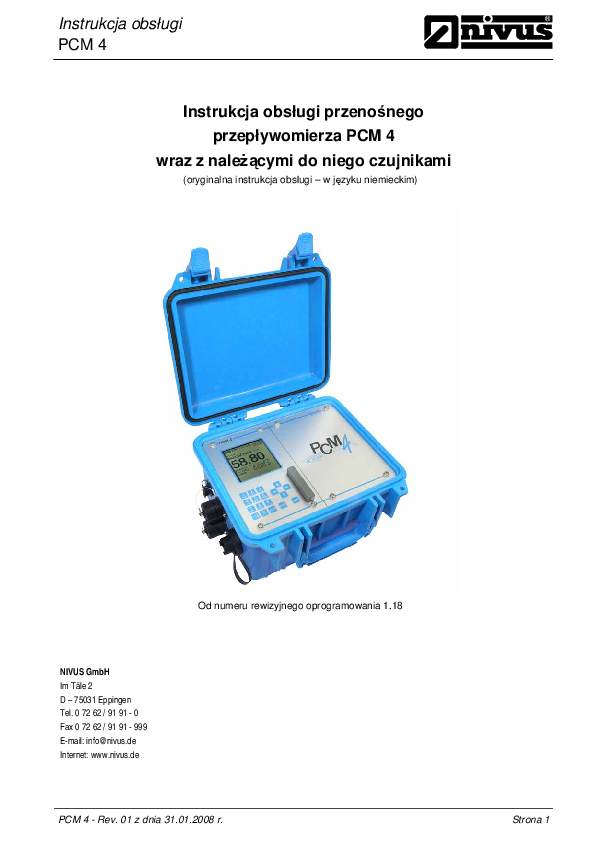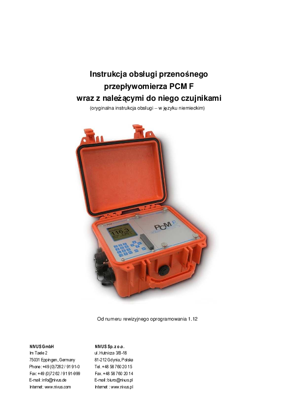 Przenośny przepływomierz do ultradźwiękowego pomiaru przepływu w lekko, jak i mocno zabrudzonych mediach, w rurociągach i kanałach z pełnym i niepełnym wypełnieniem
