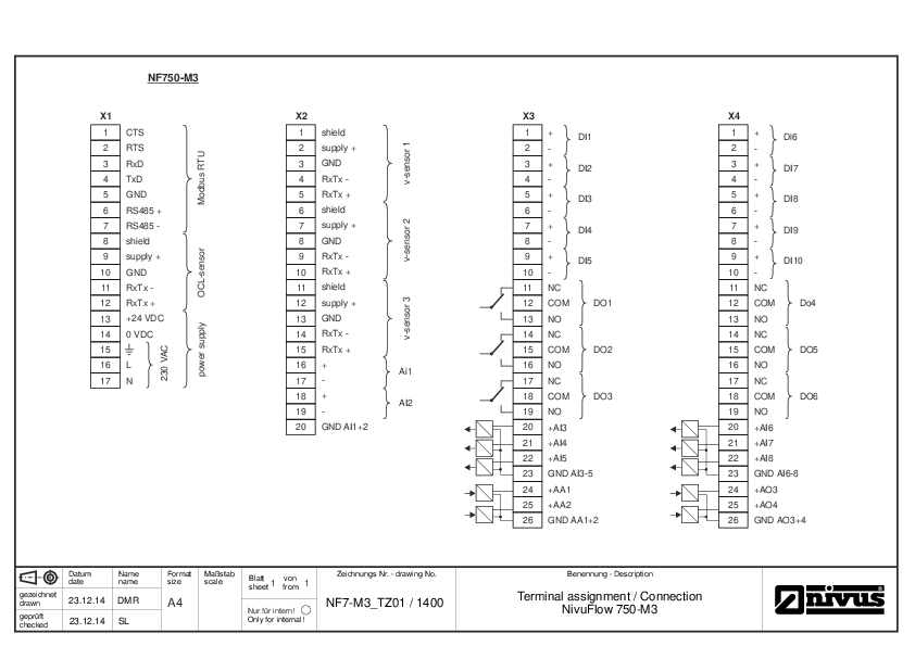 Anschlussplan NDW2 Neigungsdrehwinkelgeber