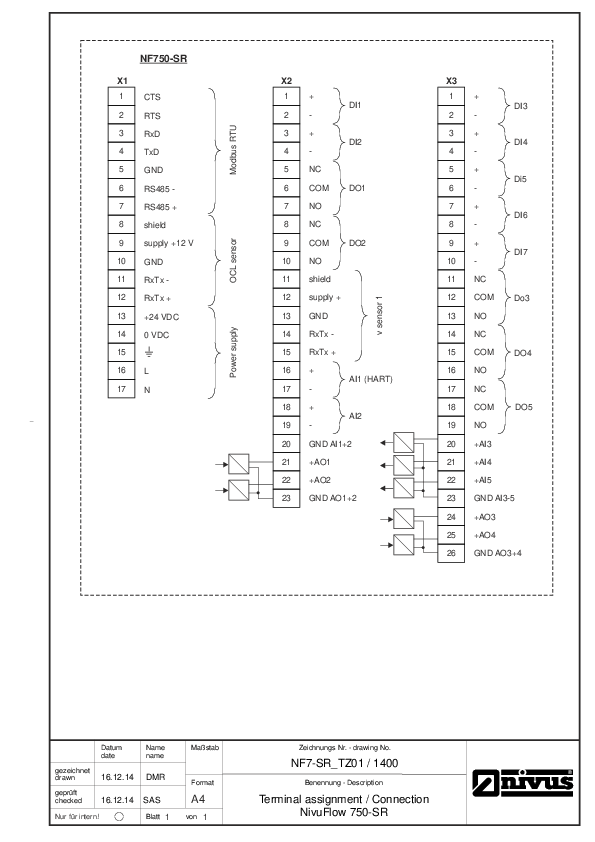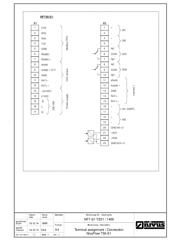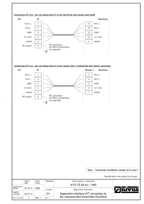 Ex separator module iXT connection to the measurement transmitter NivuFlow
