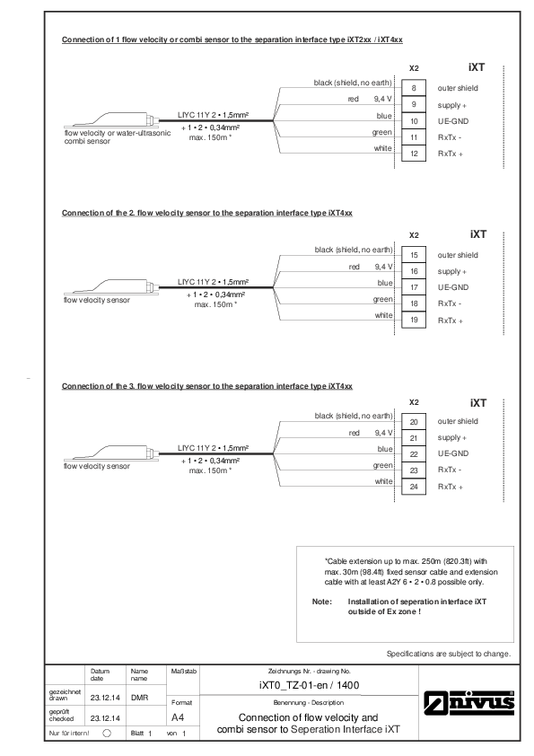 Technische Beschreibung für Ex-Trennmodul iXT für NivuFlow Messumformer - Intelligentes Ex-Trennmodul zum Ex-sicheren Anschluss von Korrelationssensoren.