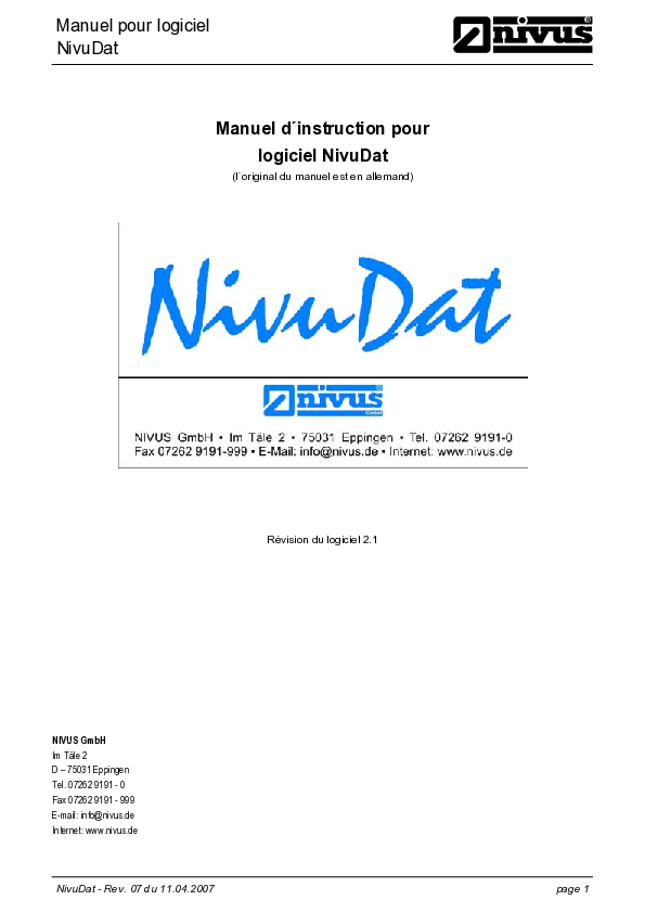 Softwarepaket beinhaltet die Programme UltraPC (NivuMaster ab 6.x.x), BlackBox PC (NivuMaster L-2 ab 1.4.8), NivuCompact PC (NivuCompact ab 1.3.) und NivuScope 2 PC (NivuScope 2 ab 1.02)