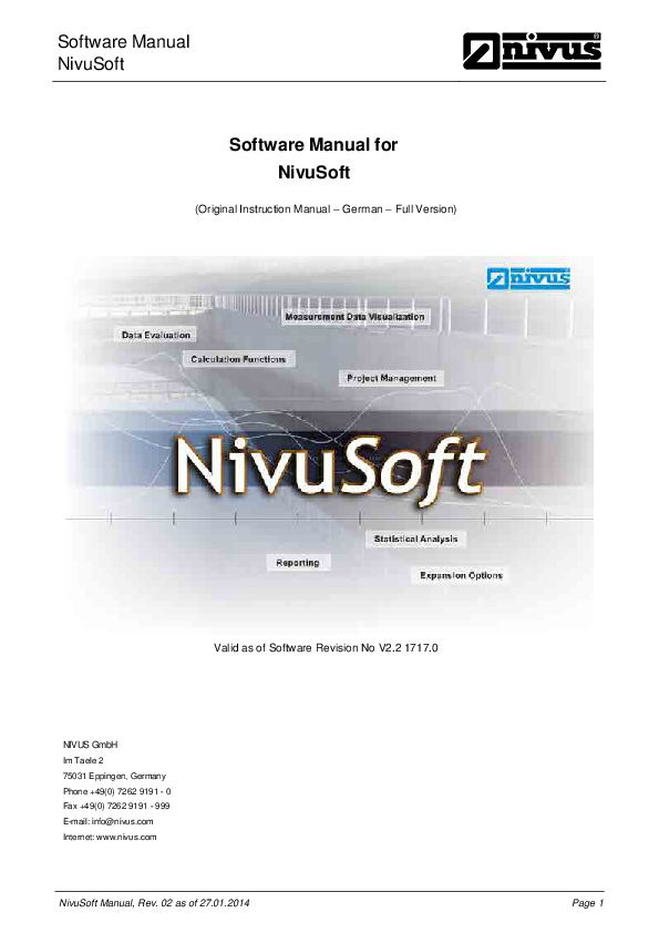The software package contains the following components: UltraPC (NivuMaster as from 6.x.x), BlackBox PC (NivuMaster L-2 as from 1.4.8), NivuCompact PC (NivuCompact as from 1.3.) and NivuScope 2 PC (NivuScope 2 as from 1.02)