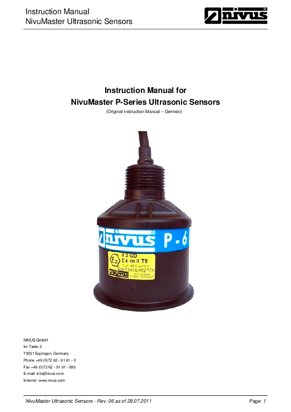 Instruction Manual for NivuMaster P-Series Ultrasonic Sensors