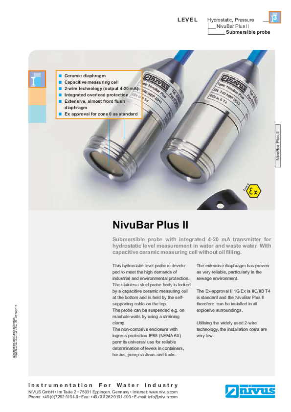 Data Sheet NivuBar Plus II