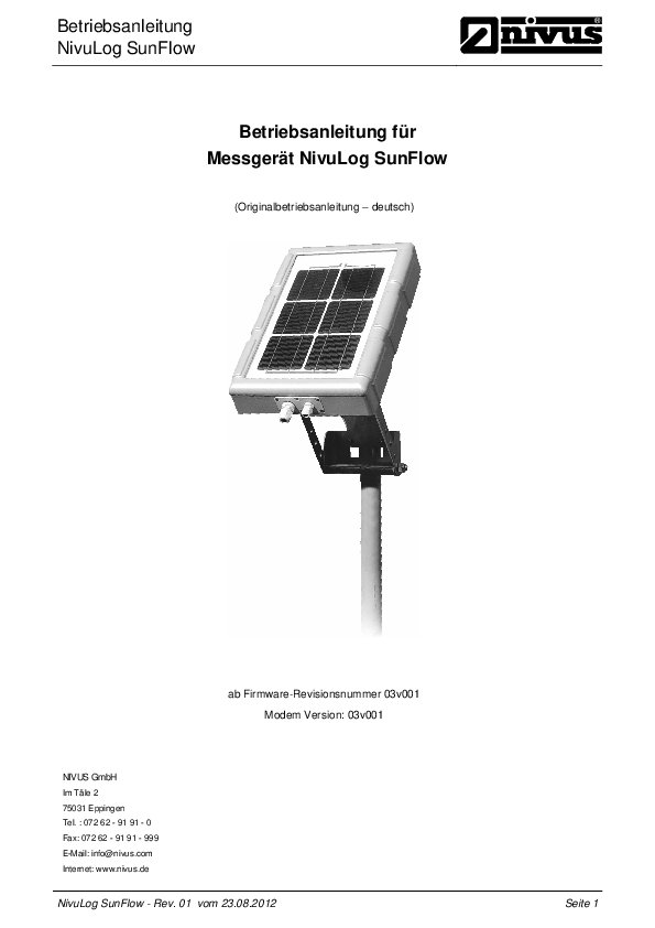 Betriebsanleitung NivuLog SunFlow