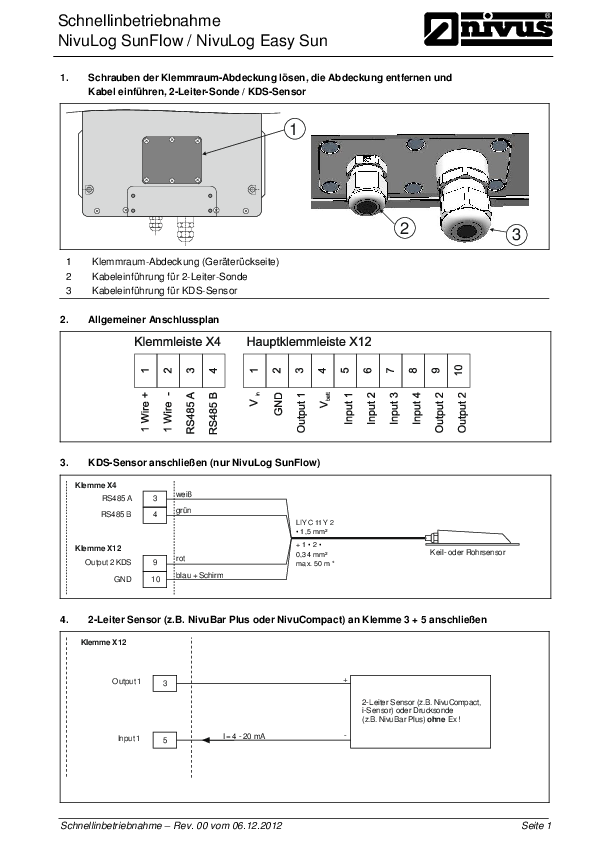 Kurzbetriebsanleitung NivuLog SunFlow