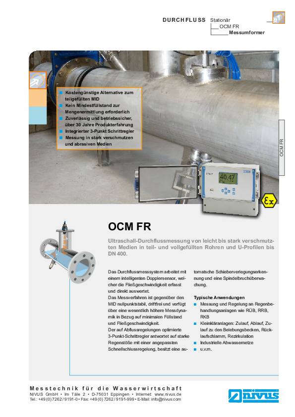 Durchflussmessung in teil- und vollgefüllten Rohren, und U-Profilen bis DN 400