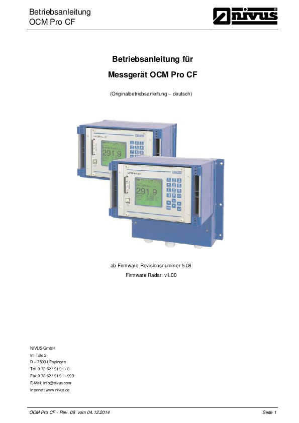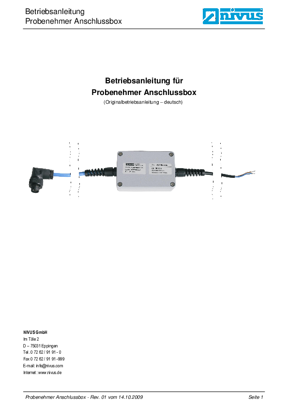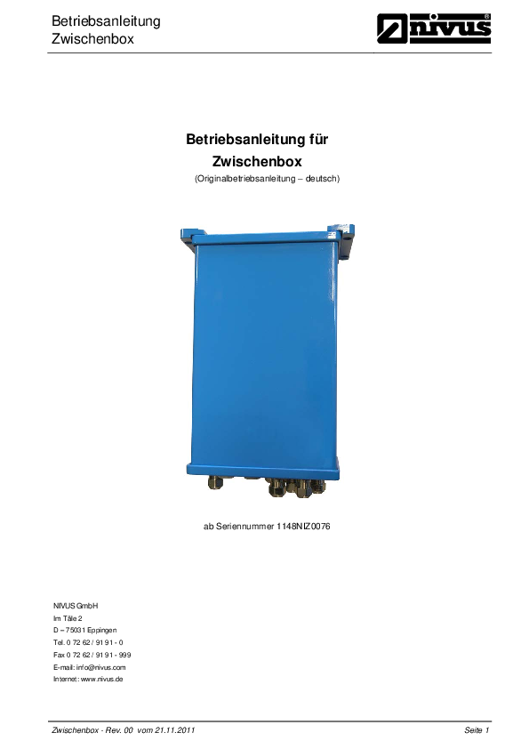 Betriebsanleitung Zwischenbox für Messgeräte NivuChannel und NivuSonic