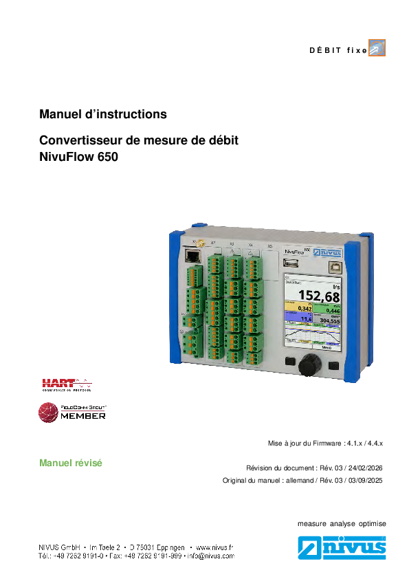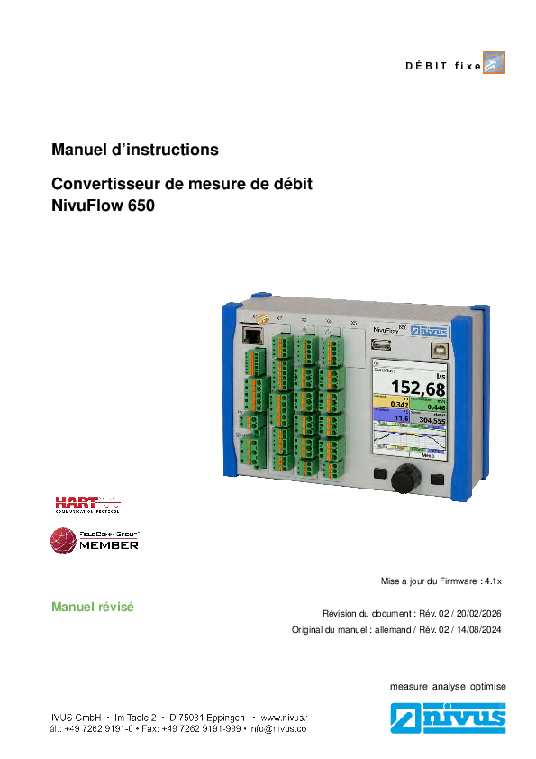 Manuel d´instruction | Convertisseu de mesure de débit NivuFlow 650 (Rev. 02)