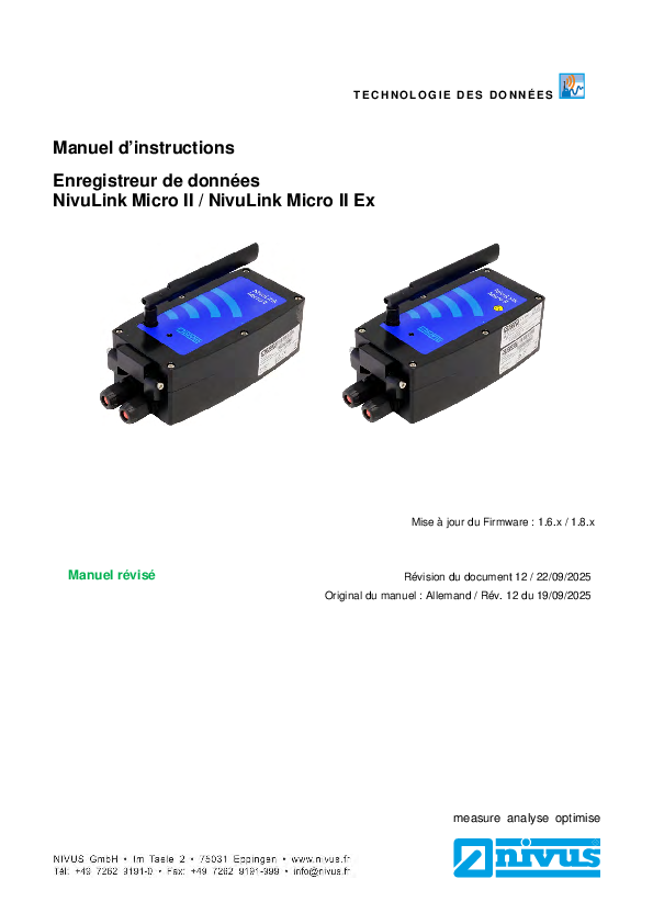 Manuel d’instructions | Enregistreur de données NivuLink Micro II / NivuLink Micro II Ex (Rev. 12)