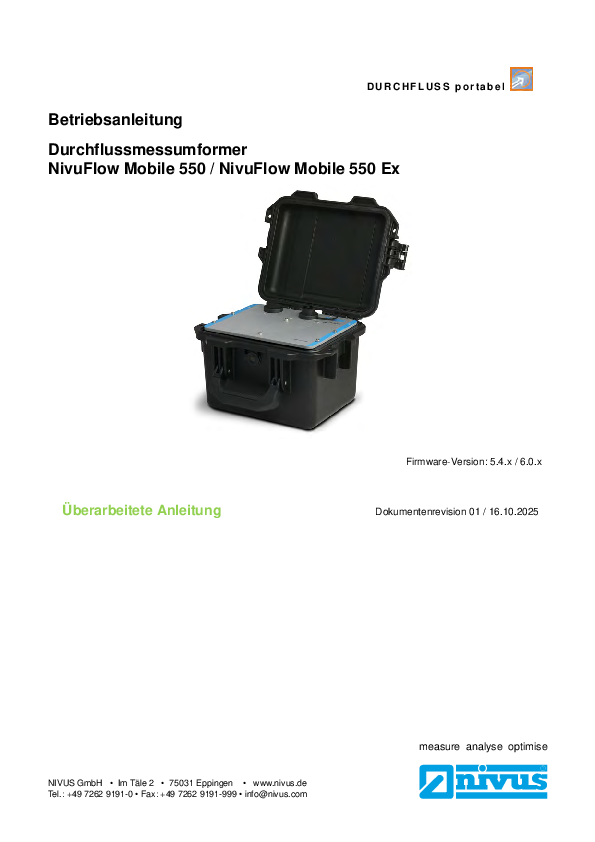 Betriebsanleitung | Durchflussmessumformer NivuFlow Mobile 550 / NivuFlow Mobile 550 Ex (Rev. 01)