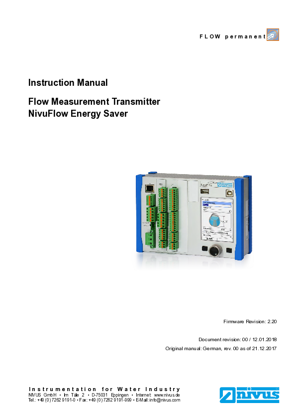 Instruction Manual | NivuFlow EnergySaver (Rev. 00)