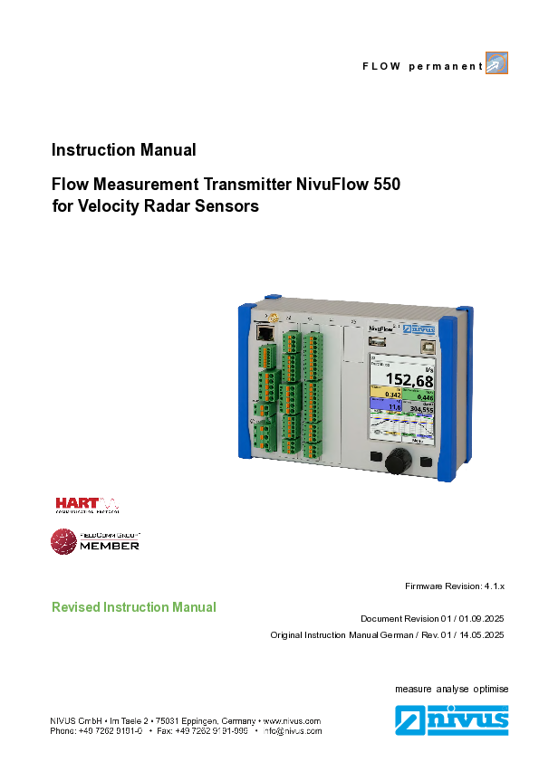 Instruction Manual | Flow Measurement Transmitter NivuFlow 550 for Velocity Radar Sensors (Rev. 01)