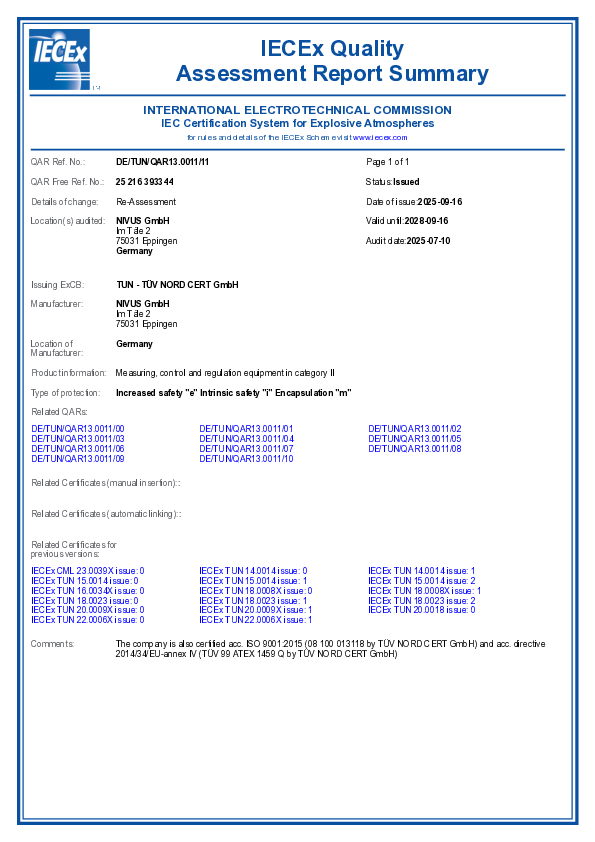 Déclaration de conformité UE | "Ex" Enregistreur de données autonome NivuLink Micro II