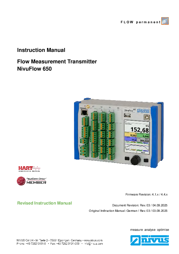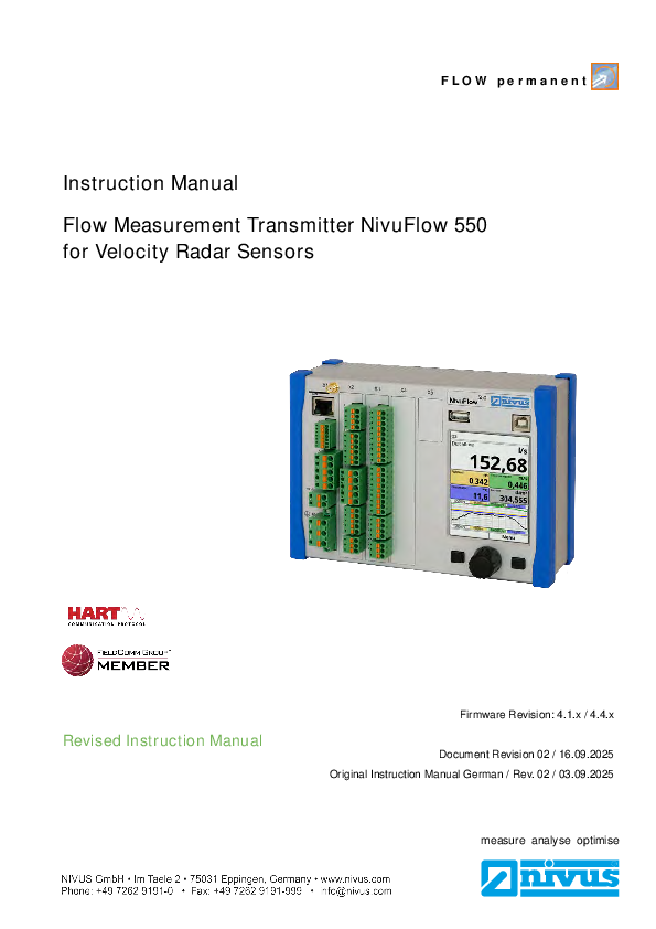 Instruction Manual | Flow Measurement Transmitter NivuFlow 550 for Velocity Radar Sensors (Rev. 02)