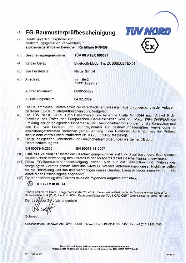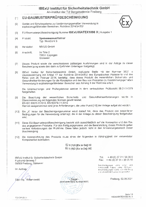 EG Baumusterprüfbescheinigung Messumformer NivuCont Plus