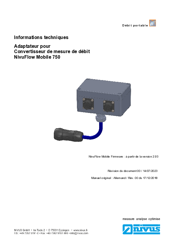 Information technique Adaptateur pour Convertisseur de mesure de débit NivuFlow Mobile 750 Rev. 00