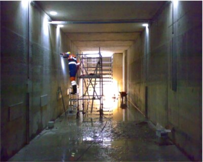 - Da der Wasserspiegel im Kanal nicht lange abgesenkt werden kann wurden die Sensorhalterungen nach oben verlegt. So können die Sensoren zu Wartungszwecken von oben entnommen werden.