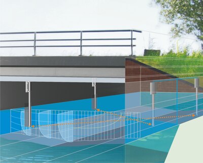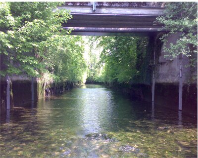 - Als Messstelle wurde die Position unter einer Brücke gewählt, um eine möglichst gut zu bestimmende Durchflussgeometrie zu erhalten.