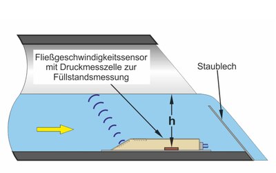 - Mittels Rohrmontagesystem wurde ein Fließgeschwindigkeitssensor mit integrierter Druckmesszelle zur Füllstandsmessung eingebaut.