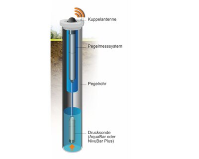 - Zum Einsatz kam ein batteriebetriebener GPRS-Pegeldatensammler mit einer direkt angeschlossenen Drucksonde Typ AquaBar.
