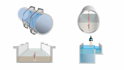 - Durchflussmessungen in sauberem oder trübem Wasser sowie in Abwasser