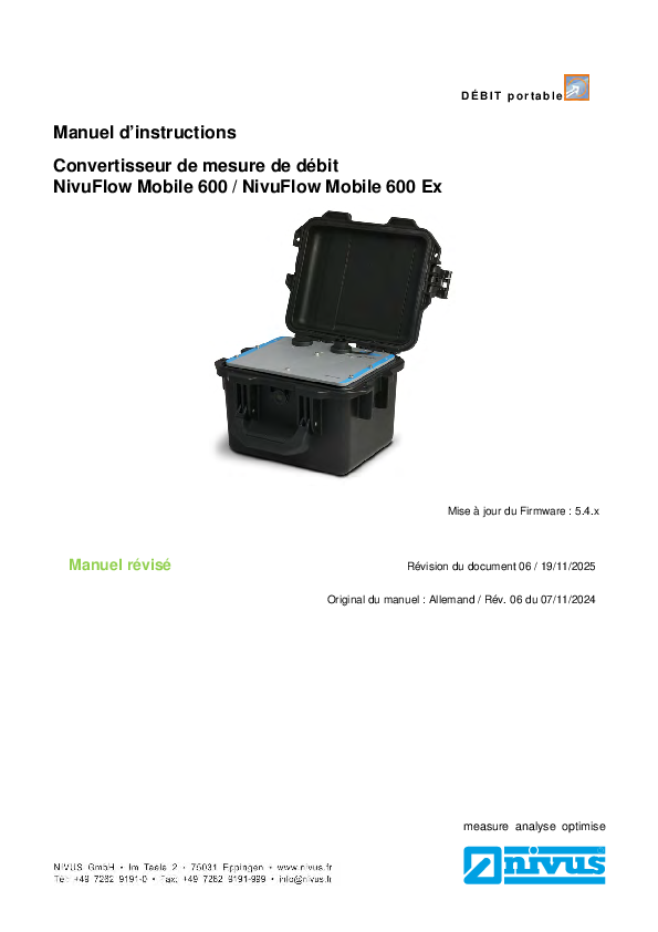 Manuel d’instructions | Convertisseur de mesure de débit NivuFlow Mobile 600 / NivuFlow Mobile 600 Ex (Rev. 07)