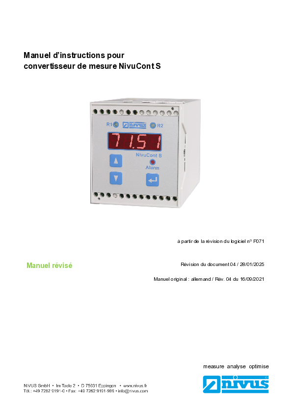 Manuel d´instruction | NivuFlow 750 / NivuFlow 700 (Rev. 03)