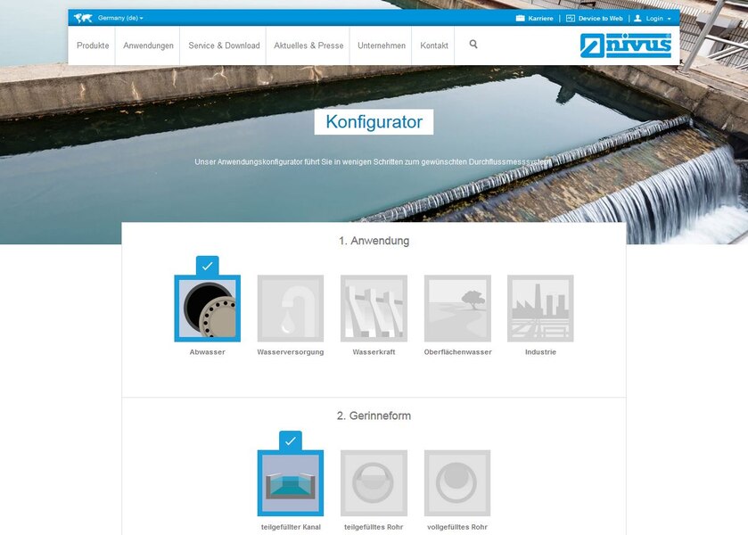 Parallel zum Konfigurator können Anwender auf der NIVUS-Website die passenden Produkte auch über die verschiedenen Produktkategorien sowie über konkrete Anwendungsbeispiele finden.