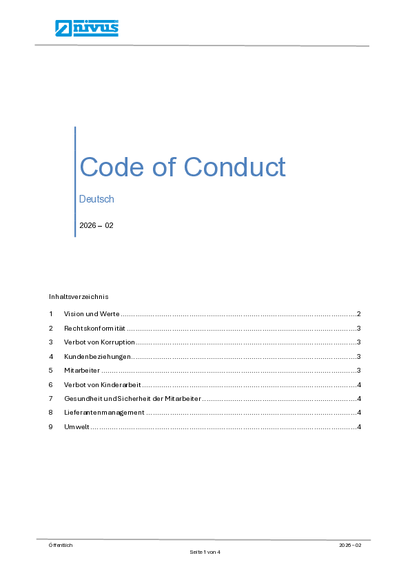 NIVUS setzt auf umweltfreundliche und ökologische Technologien um maximale Nachhaltigkeit auch innerhalb der Lieferkette zu erzielen. Zusätzlich beleuchten Kontinuierliche Verbesserungsprozesse bestehende Prozesse und Abläufe ebenfalls mit dem Ziel die Umwelt zu schonen und unseren Kunden nicht nur bessere sondern auch nachhaltigere Produkte anzubieten.